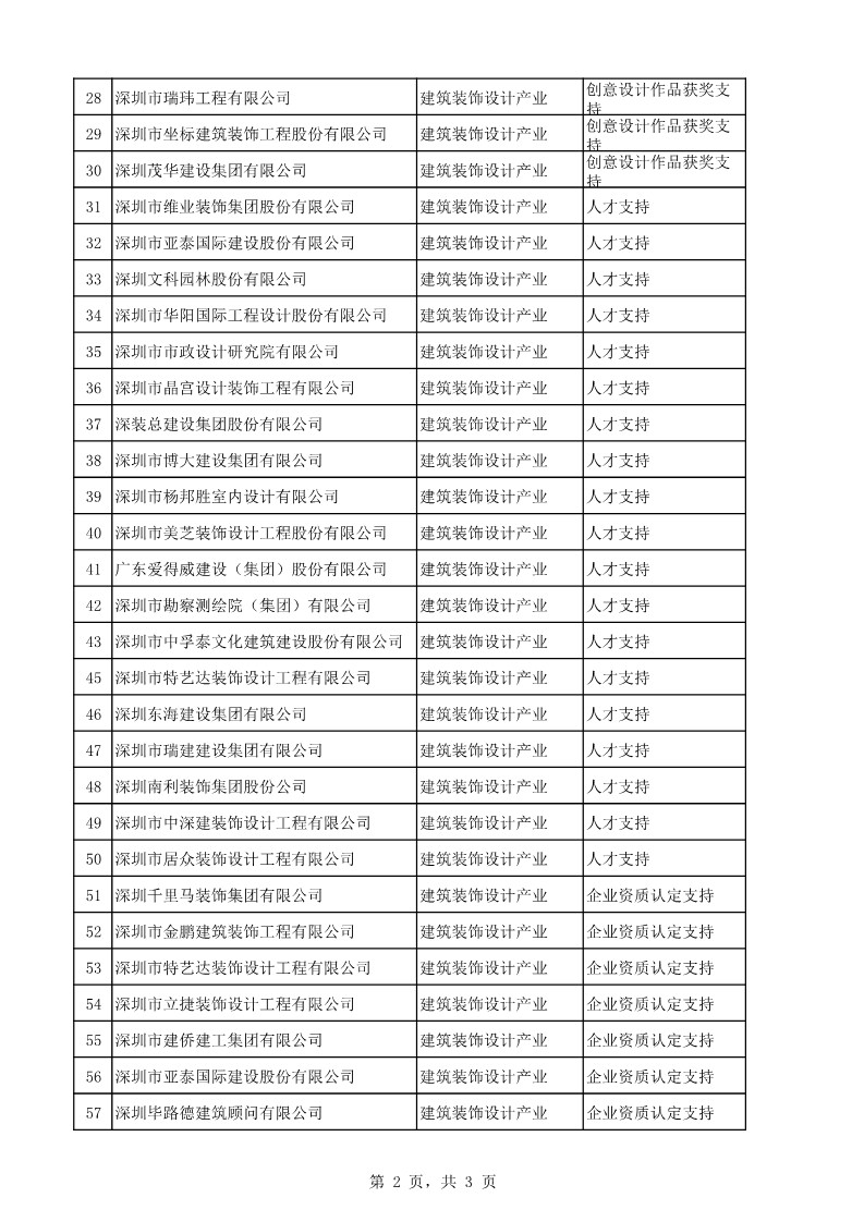 核心提示:2019年12月11日,福田企服中心公布了2019年福田區(qū)產(chǎn)業(yè)發(fā)展專項資金文化旅游體育產(chǎn)業(yè)、時尚產(chǎn)業(yè)、建筑裝飾設計產(chǎn)業(yè)分項第五批支持企業(yè)及項目匯總表。其中,深圳市華南裝飾集團股份有限公司、深圳市亞泰國際建設股份有限公司、深圳文業(yè)裝飾設計工程有限公司、深圳市維業(yè)裝飾集團股份有限公司等建筑裝飾設計企業(yè)獲得該項資金支持,支持項目類別有綜合貢獻支持、創(chuàng)意設計作品獲獎支持、人才支持、企業(yè)資質(zhì)認定支持。