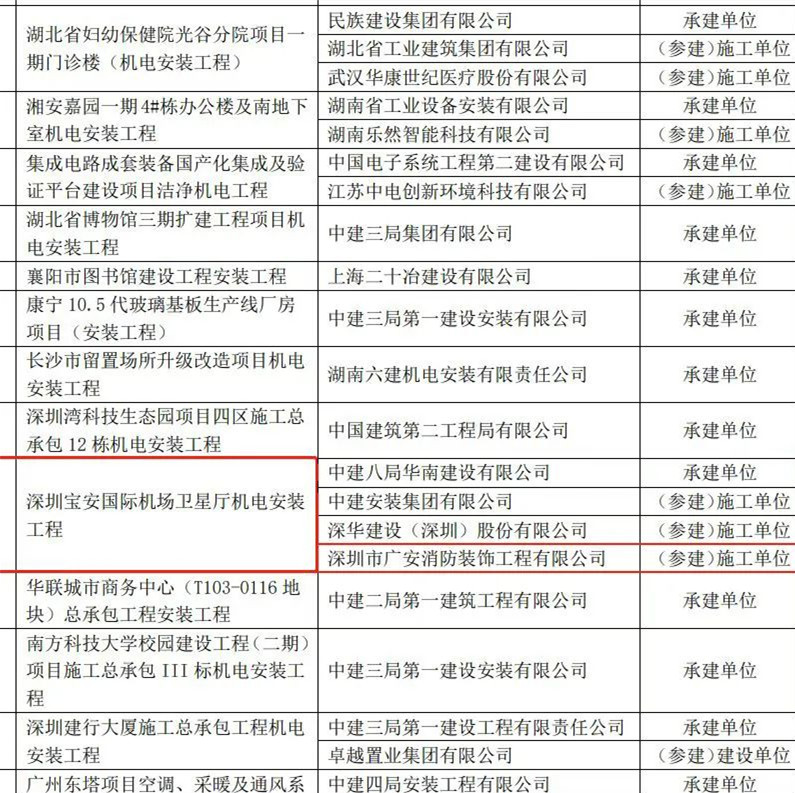 近日,深圳寶安國際機場衛星廳機電項目喜獲我國安裝行業的最高工程質量榮譽——中國安裝工程優質獎(中國安裝之星)。深圳市廣安消防裝飾工程有限公司作為參建單位之一,承包了該項目的消防工程部分,并全力配合總包單位中建八局華南建設有限公司,在機電安裝項目的給排水工程部分保質保量完成了建設任務!