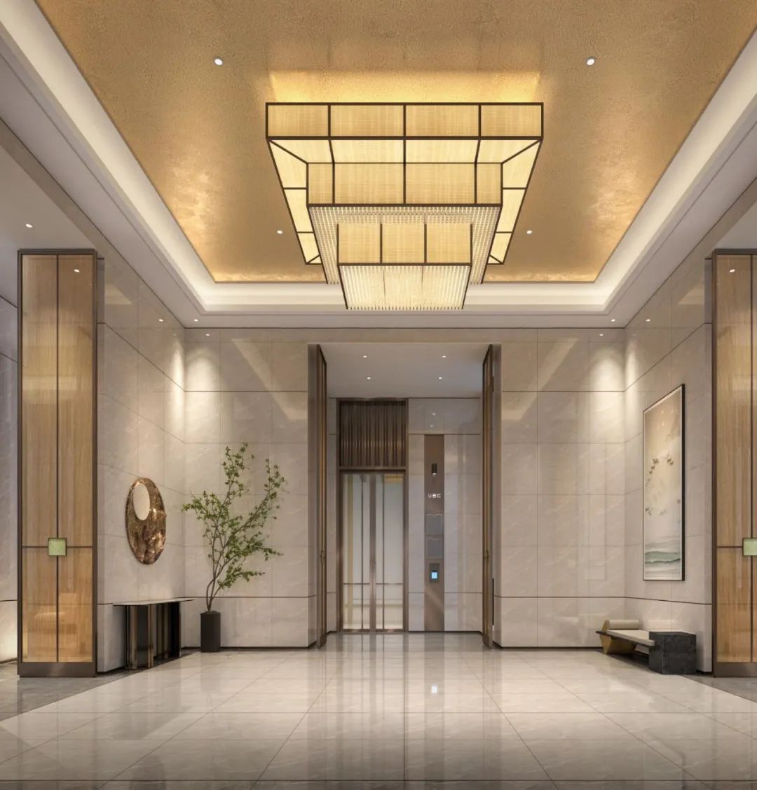 入戶大堂打造空間秩序和儀式感,設(shè)計(jì)師通過對(duì)光影的創(chuàng)造引入,呈現(xiàn)浩然之氣,全新的藝術(shù)審美給住戶帶來更多的視覺享受。將景觀融入室內(nèi),強(qiáng)調(diào)室內(nèi)外互動(dòng)意境,讓人充分體驗(yàn)到室內(nèi)空間與自然環(huán)境的融合。