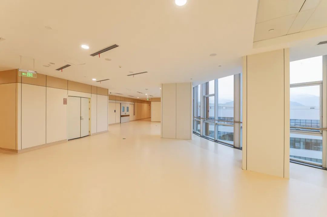 醫(yī)院內(nèi)部裝飾簡潔大氣,通過不同材質(zhì)的搭配運用,給人豐富的體感和觀感。醫(yī)院整體的色彩基調(diào)以暖灰色為主,配以溫暖的木色材質(zhì),打破了國內(nèi)綜合性醫(yī)院通常采用的冷調(diào)特性,加之溫暖柔和的燈光,營造簡潔、清爽的空間感受,給就診患者提供溫暖舒適的視覺感受,同時讓就診環(huán)境更加輕松舒適。