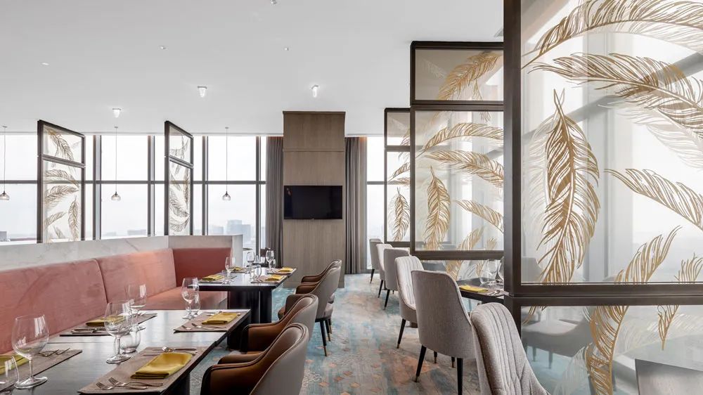 頂樓的星空酒吧,星星點滴的燈光讓人仿佛身處雪花飛舞中,在冰花玻璃圍繞著的酒窖旁,以城市霓虹為幕,邀君共飲一杯蓉城夜色。