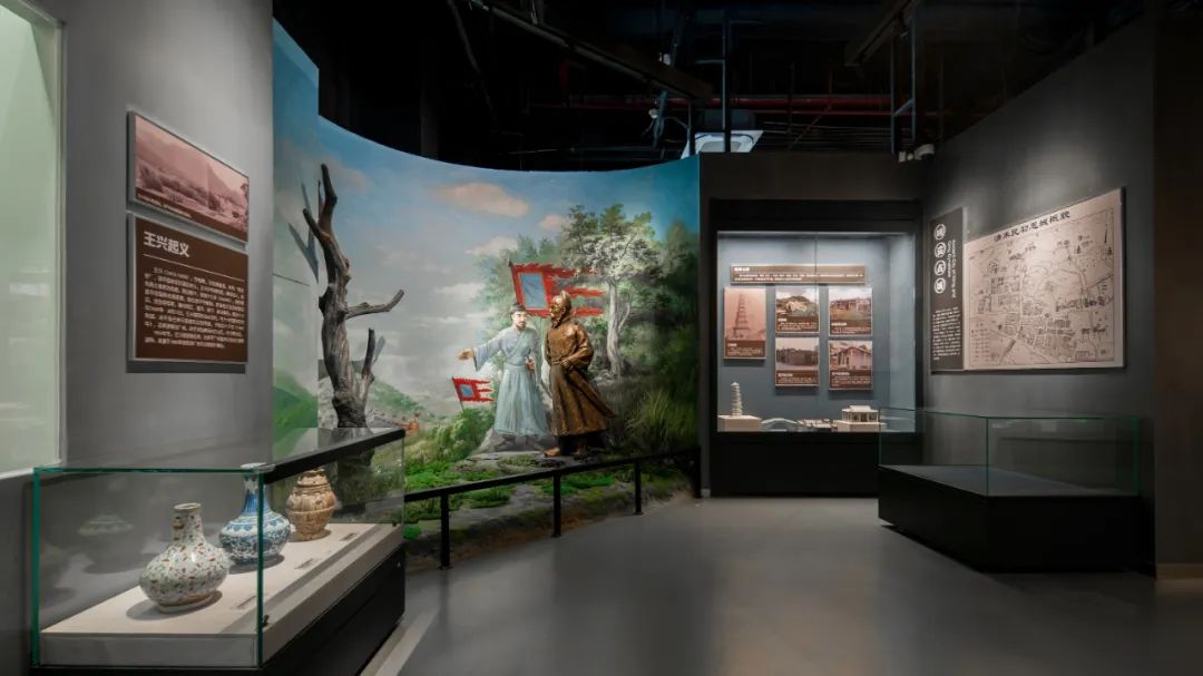 古邑沿革單元,運用互動滑軌多媒體技術,展示恩平千年的發展脈絡,帶參觀者領略恩平歷史的同時,增強了趣味性與互動性。古邑開端單元,采用封閉展柜設計和圖文展板,展示秦漢時期遺存及文物。古邑發展單元,采用壁掛微縮場景及出土文物,展示唐代晚期墓葬,了解古代先人曾經的文明,圖文展板結合實物陳列,展示恩平古窯址。場景復原恩平墟城全貌,再現黃沙墟的盛況。運用微縮場景展示手法,重現宋代恩平古邑的繁榮。古邑繁榮單元,明清古城部分設計清代恩平古城沙盤,結合圖文展板展示古恩平的政治、經濟、文化場景等內容。明清兵事部分以王興起義為原型,設計大型戰爭場景,展示王興英勇善戰,屢敗清軍的事跡。明清古建部分,運用圖文展板和實物模型,展示明清時期的古塔、寺廟、祠堂、橋梁等詳細內容。古邑融合單元,采用圖文展板結合展柜實物,展示漢族南遷和恩平少數民族融合,是觀眾了解南遷的漢人,與當地居民一起促進恩平社會的發展內容。