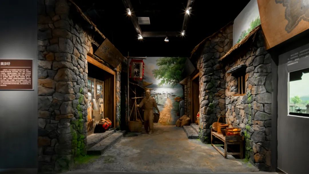 本展區展示恩平得天獨厚的自然資源,與其孕育出的厚重文明。山明水秀單元,以藝術畫的手法展示恩平的山水,結合圖文展板,詳細介紹君子山、大人山等內容。場景復原恩平溫泉,墻面采用水珠背景,展示溫泉具有豐富礦物質元素和微量元素,圓形展板展示熱水溫泉、黑泥溫泉等詳細內容。史前遺存單元,復原恩平史前生活場景,結合圖文展板,出土文物等資料,展示三官山遺址、白虎頭嶺遺址等內容,展示史前恩平人的生活場景。為了讓觀眾更直觀了解各時期的恩平歷史,展區按照秦朝至民國時期13個歷史時期,在LED大屏幕上設置13個屏幕觸點,觀眾只要點擊相應的觸點,就會彈出文字內容,既創新了展示方式,又增加了觀展樂趣。