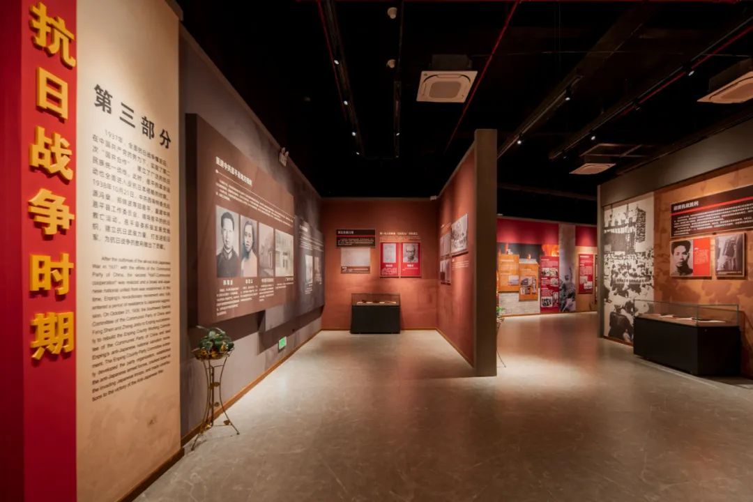 展區以黃色為主色調,弧形墻壁并篆刻烈士名錄,象征著烈士們忠心向黨的紅心,設計莊重肅穆。