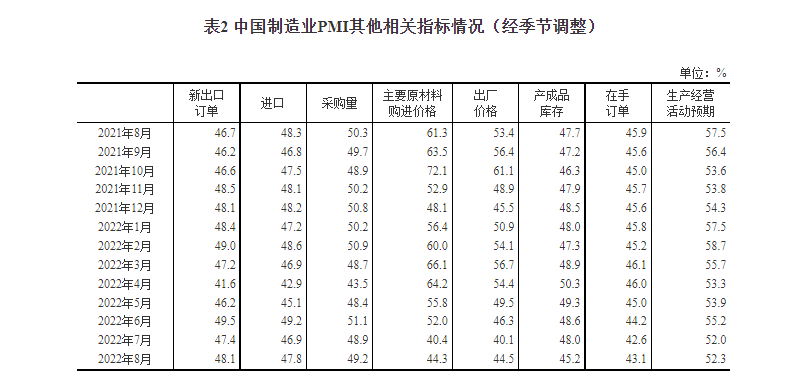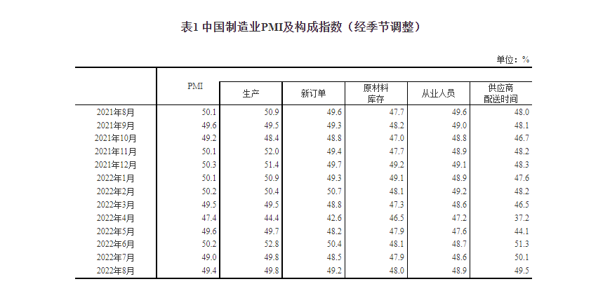 生產(chǎn)指數(shù)為49.8%,與上月持平,表明制造業(yè)生產(chǎn)景氣度與上月相當(dāng)。