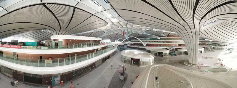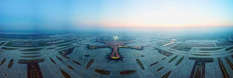 截至6月30日,北京大興國際機(jī)場各建設(shè)主體負(fù)責(zé)的主要工程項目均如期順利竣工,完工項目一次驗收合格率均達(dá)100%。大興國際機(jī)場工作重心從工程建設(shè)轉(zhuǎn)入準(zhǔn)備投入運營。 這是6月14日無人機(jī)拍攝的北京大興國際機(jī)場(全景拼接照片)。