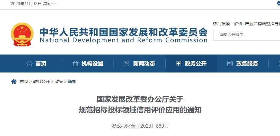 國家發(fā)改委:不得以信用評價評分等方式變相設(shè)立招投標交易壁壘