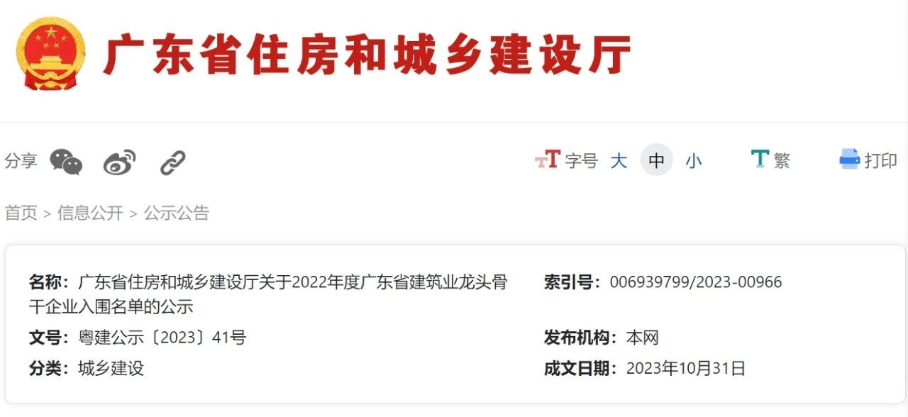 廣東省住建廳2022年度廣東省建筑業龍頭骨干企業入圍名單公示,深裝集團、博大、萬德、海外、維業、遠鵬等深圳建筑裝飾企業位列榜